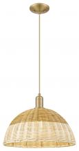 Natural Ballston Dome - 1 Light - 6 inch - Champagne Bronze - Natural Fiber Basketweave - Cord hung - Mini Pendant