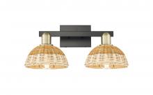 Natural Ballston Dome - 2 Light - 16 inch - Antique Brass - Natural Fiber Basketweave - Bath Vanity Light