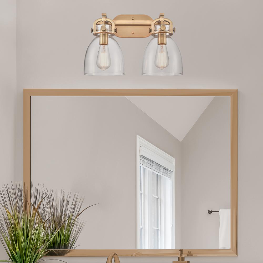 Newton Bell - 2 Light - 17 inch - Brushed Brass - Clear Shade - Bath Vanity Light