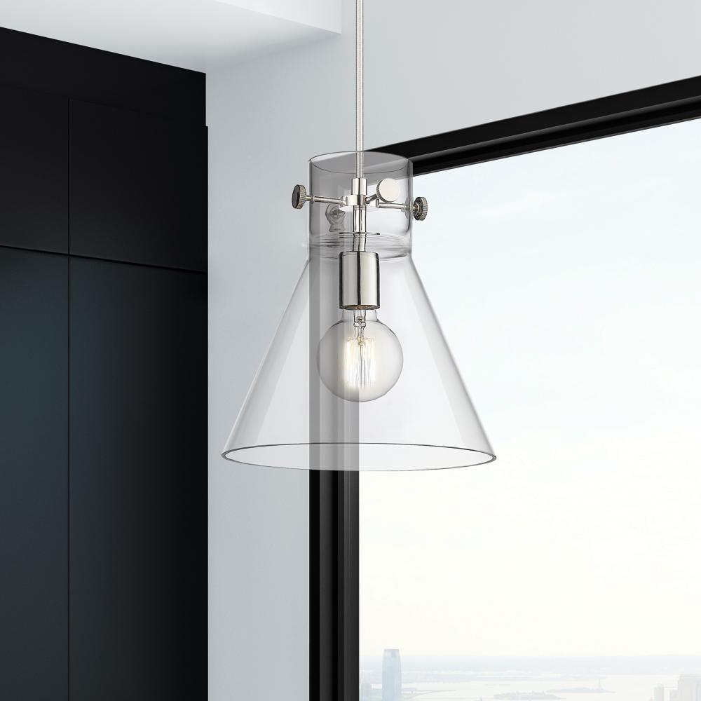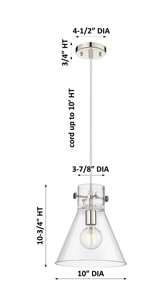 Newton Cone - 1 Light - 10 inch - Polished Nickel - Clear Shade - Cord hung - Pendant