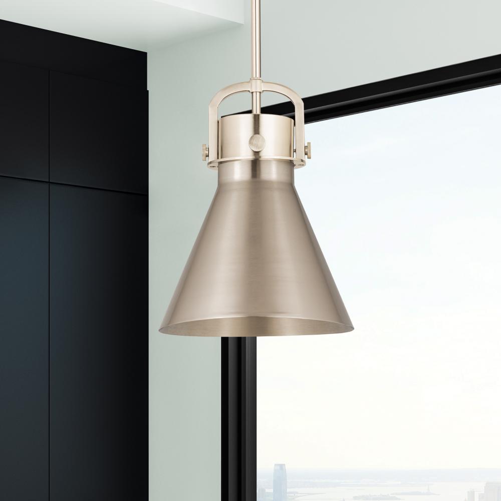 Newton Cone - 1 Light - 10 inch - Satin Nickel - Satin Nickel Shade - Mini Pendant
