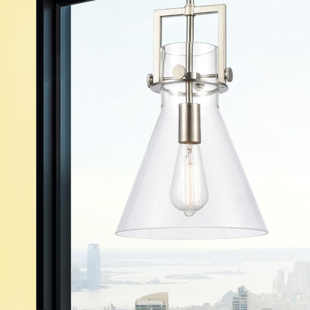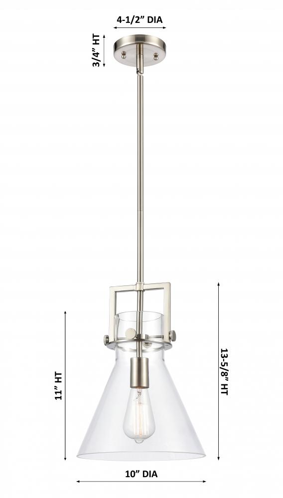 Newton Cone - 1 Light - 10 inch - Satin Nickel - Clear Shade - Mini Pendant
