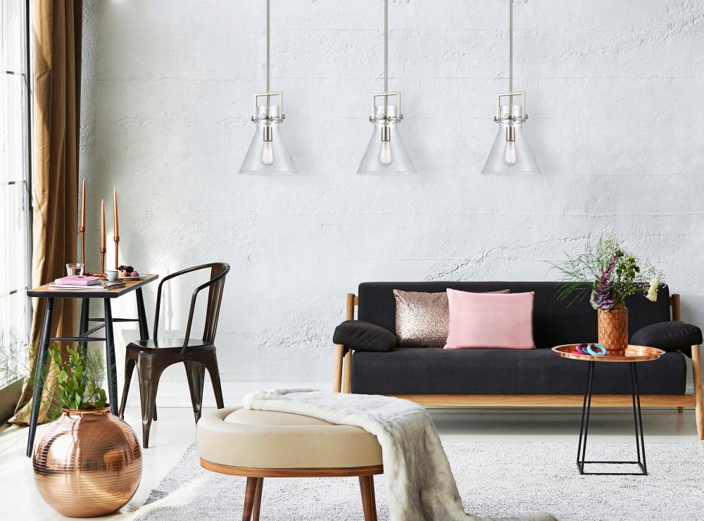 The Newton Cone is a modern industrial collection that incorporates exceptional architectural details and an equally striking cone shaped shade. The geometric shape of the glass or metal shade give this collection a charming and timeless presence. For a ki