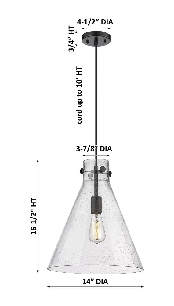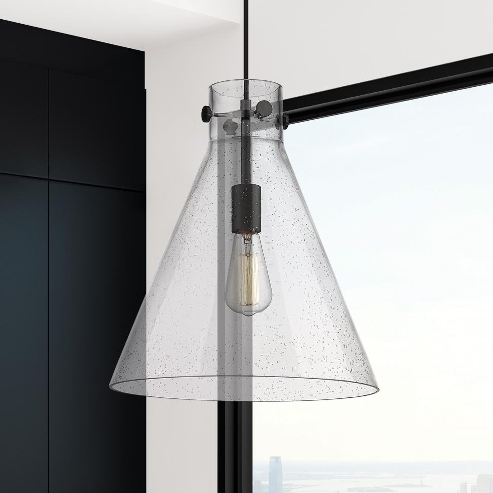 Newton Cone - 1 Light - 14 inch - Matte Black - Seedy Shade - Cord hung - Pendant