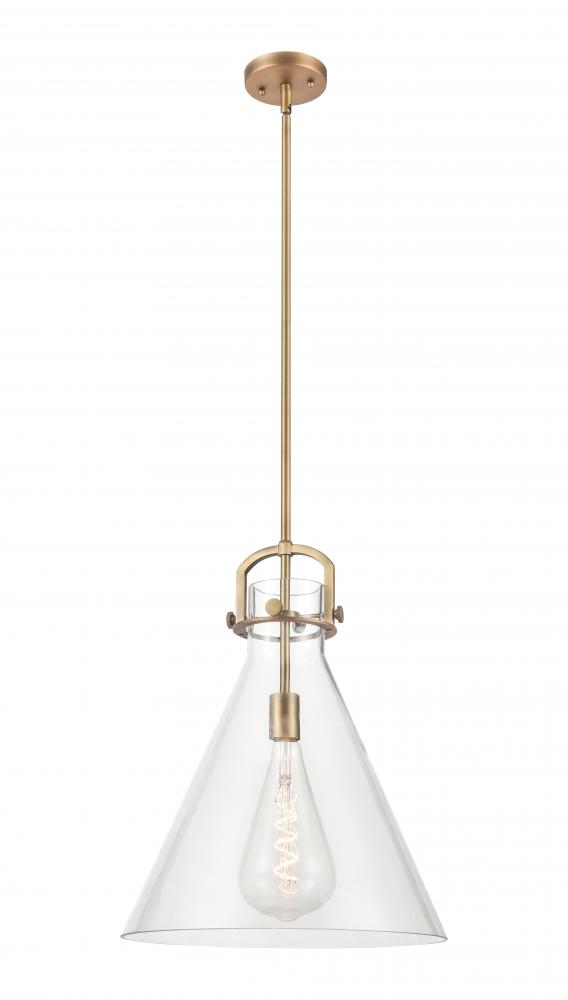 Newton Cone - 1 Light - 16 inch - Brushed Brass - Clear Shade - Pendant
