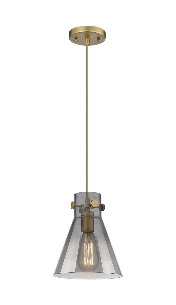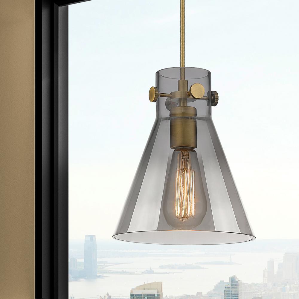 Newton Cone - 1 Light - 8 inch - Brushed Brass - Light Smoke Shade - Cord hung - Pendant