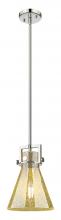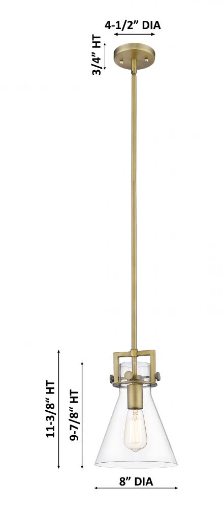 Newton Cone - 1 Light - 8 inch - Brushed Brass - Clear Shade - Mini Pendant