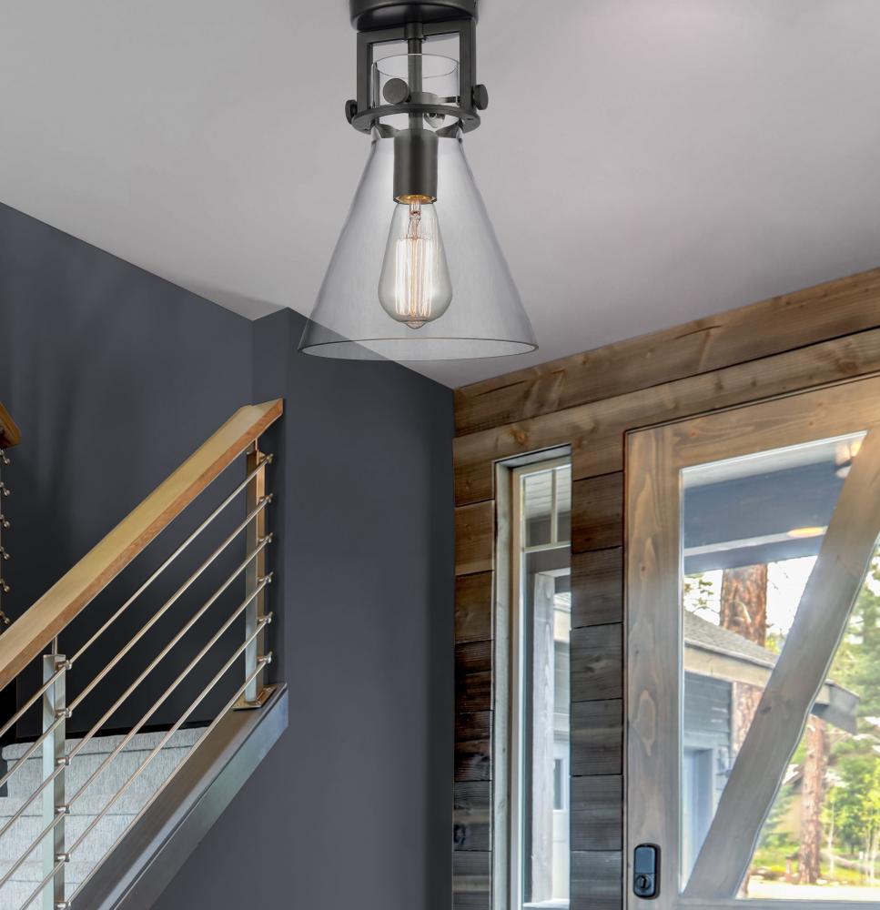 Newton Cone - 1 Light - 8 inch - Matte Black - Clear Shade - Semi-Flush Mount