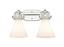 Newton Cone - 2 Light - 17 inch - Brushed Brass - Clear Shade - Bath Vanity Light