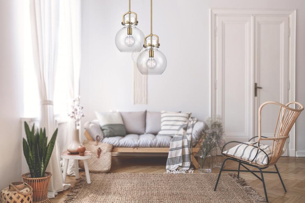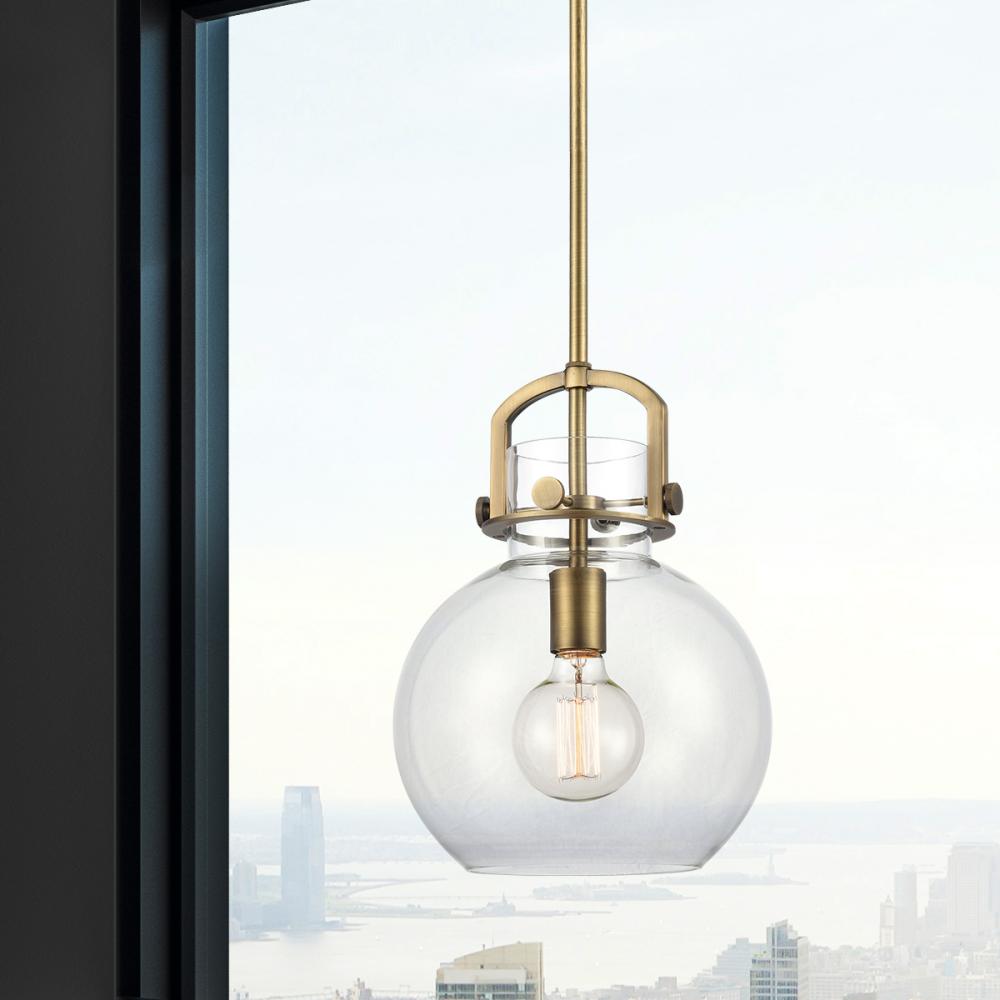 Newton Sphere - 1 Light - 10 inch - Brushed Brass - Clear Shade - Stem Hung - Mini Pendant