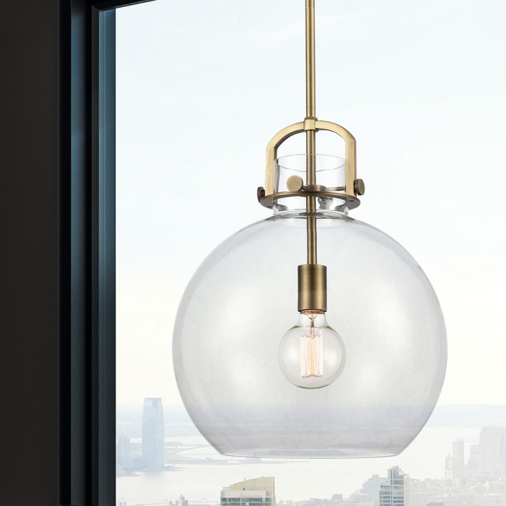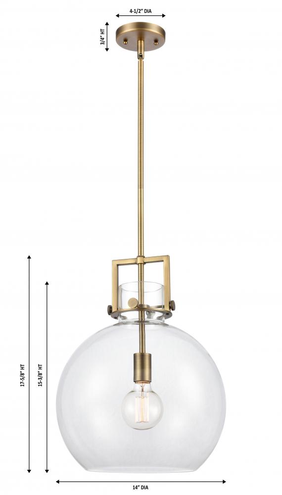 Newton Sphere - 1 Light - 14 inch - Brushed Brass - Clear Shade - Pendant