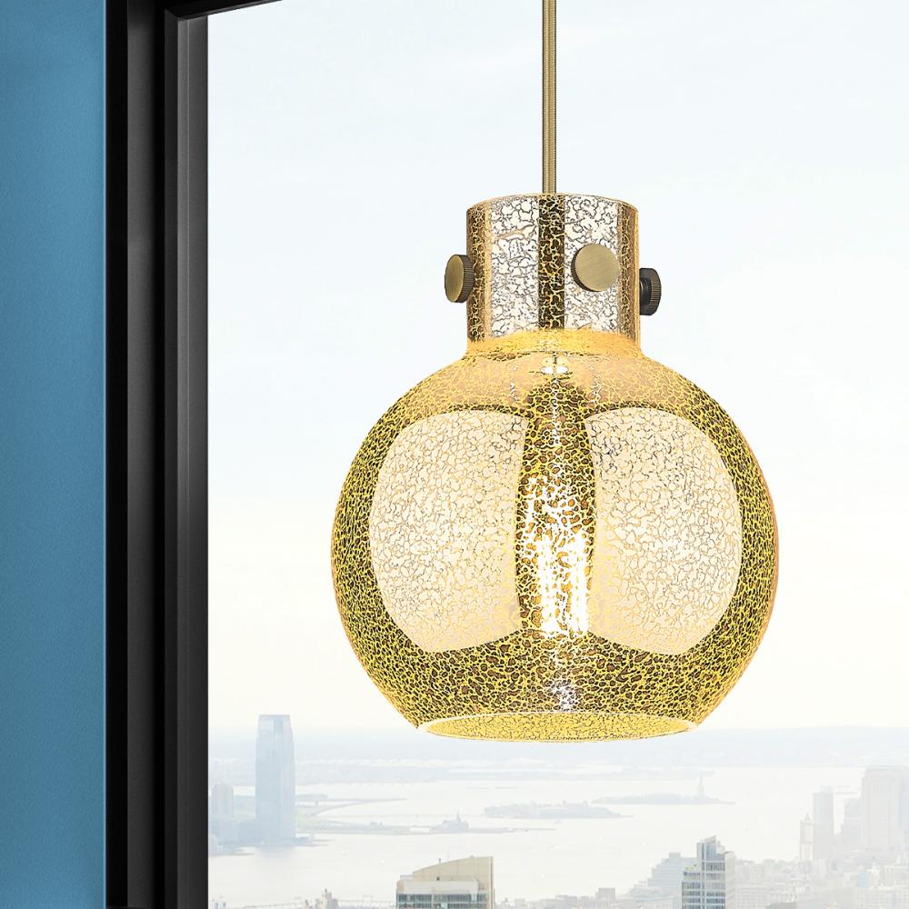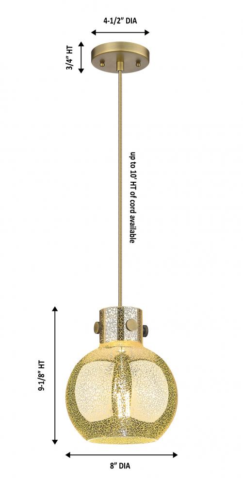 Newton Sphere - 1 Light - 8 inch - Brushed Brass - Mercury Shade - Cord hung - Mini Pendant