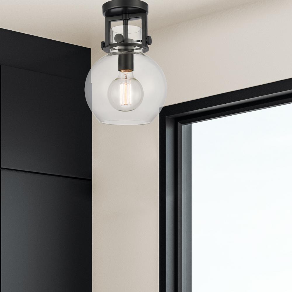 Newton Sphere - 1 Light - 8 inch - Matte Black - Clear Shade - Semi-Flush Mount
