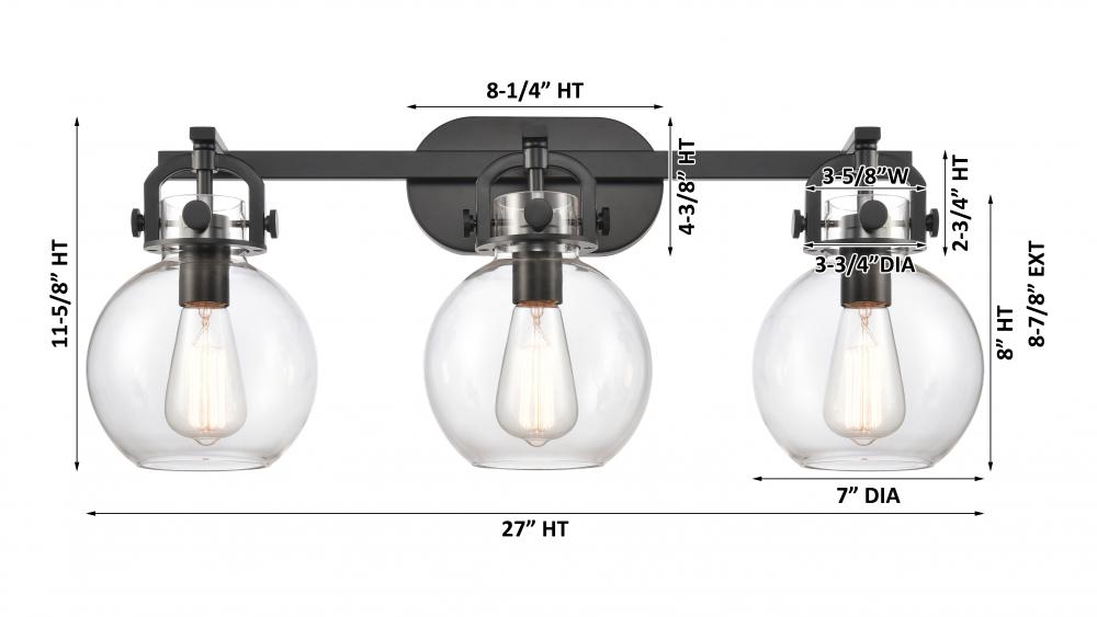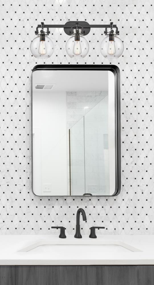 Newton Sphere - 3 Light - 27 inch - Matte Black - Clear Shade - Bath Vanity Light