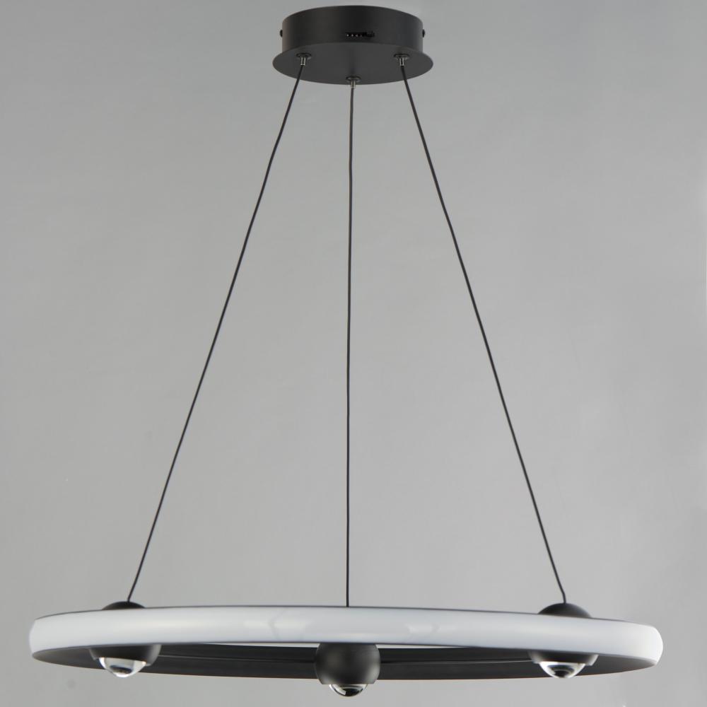 Introducing a new take on the now classically modern LED ring, large illuminated spheres act as "nodes" to support the tapered aluminum channel while also providing additional down light. Featuring a CCT selectable switch, the collection convenient
