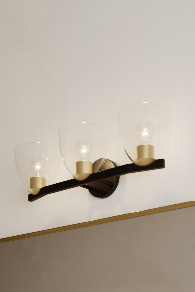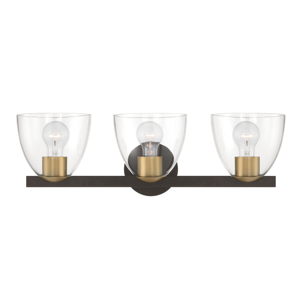 3-Light Vanity - Dark Bronze and Legacy Brass with Clear Glass