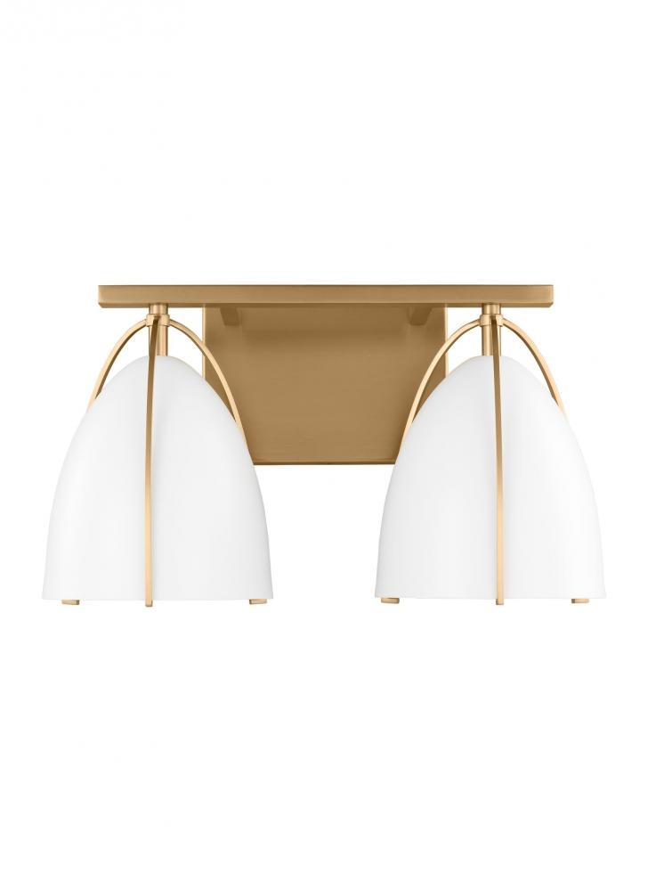 The Norman two light vanity fixture in satin brass provides abundant light for your bath vanity, while adding a layer of today's style to your interior design.
