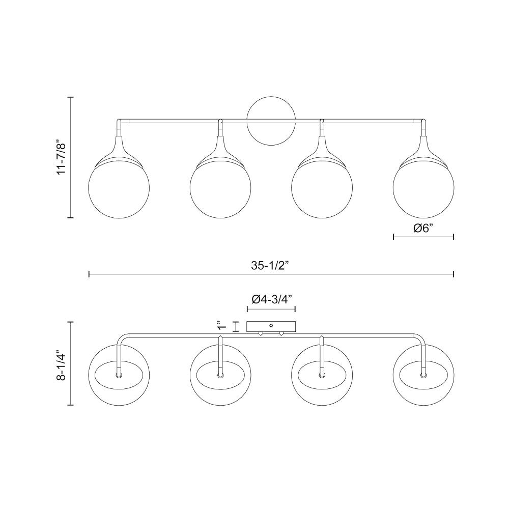 Nouveau 35-in Matte Black/Opal Matte Glass 4 Lights Vanity