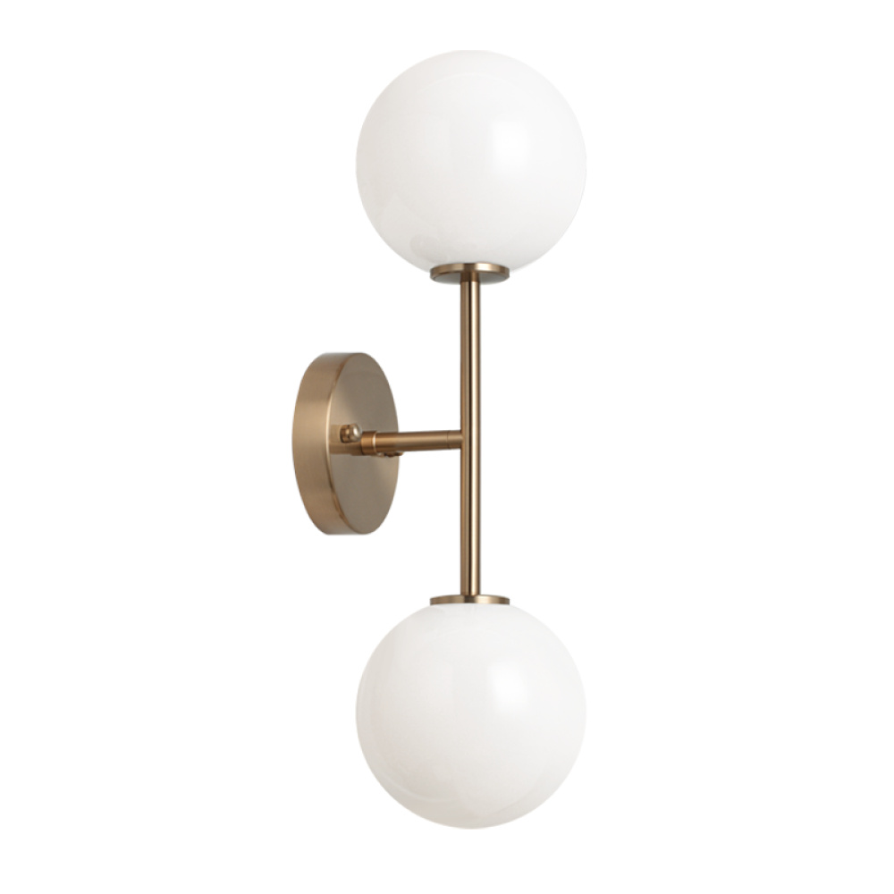 Novo is modern yet classic – available in the form of chandelier, wall sconce, and flush mount. The rods and base are either Aged Gold Brass or Black finish paired with a contrasting Opal Glass. The style is very versatile and will add beauty to multiple rooms.