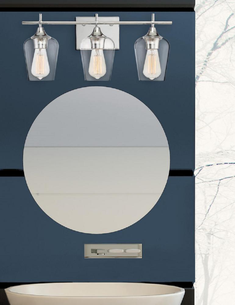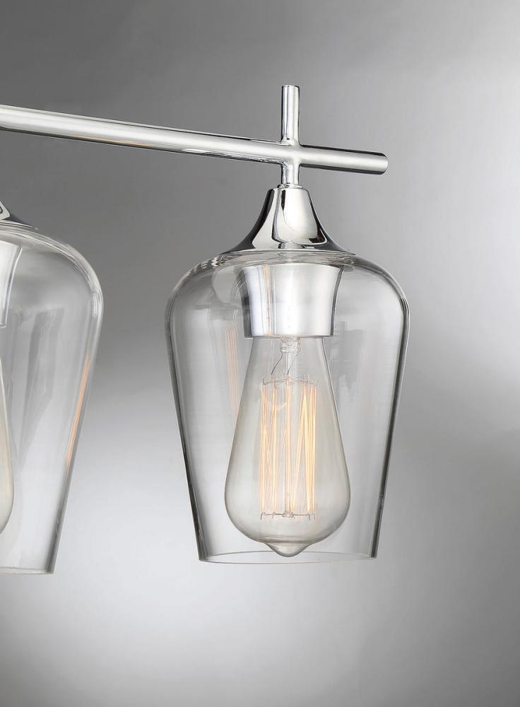 The Octave 3-light bath bar from Savoy House has understated elegance. It features large curved shades of clear glass, minimal detailing and a polished chrome finish. It may be mounted as either uplight or downlight. Bath bar lights are a classic choice for illuminating vanity mirrors in bathrooms big and small. Because the bulbs are exposed, try using stylized bulbs (not included) such as Edison for a different look! The polished chrome finish can be paired with chrome hardware or mixed with hardware in other fixtures. Try the Octave with glam, transitional or contemporary style rooms for a chic look. When you choose a Savoy House lighting fixture, you can be certain you've selected a piece that will withstand the test of time.
