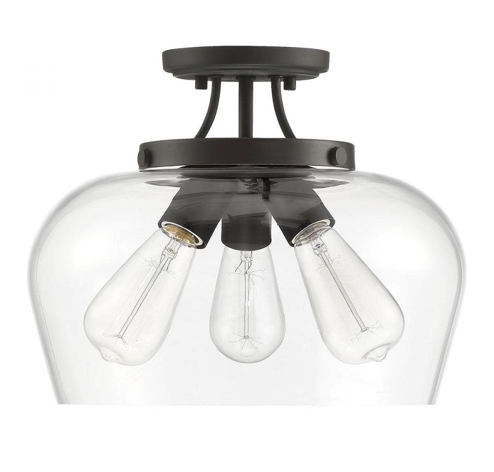Find close-to-ceiling light with understated elegance when you get the Savoy House Octave 3-light ceiling semi-flush mount. It features a shade of curved glass, minimal detailing and an English bronze finish. Semi-flush mounts can be used on the ceiling of pretty much any interior room, including foyers, hallways, stairways, closets, bathrooms, bedrooms, kitchens and more! Bulbs not included. Try using stylized bulbs like Edison or tubular for a different look! The English bronze finish can be paired with bronze hardware or mixed with hardware in other finishes. Try the Octave with glam, transitional or contemporary style rooms for a chic look. When you choose a Savoy House lighting fixture, you can be certain you've selected a piece that will withstand the test of time.