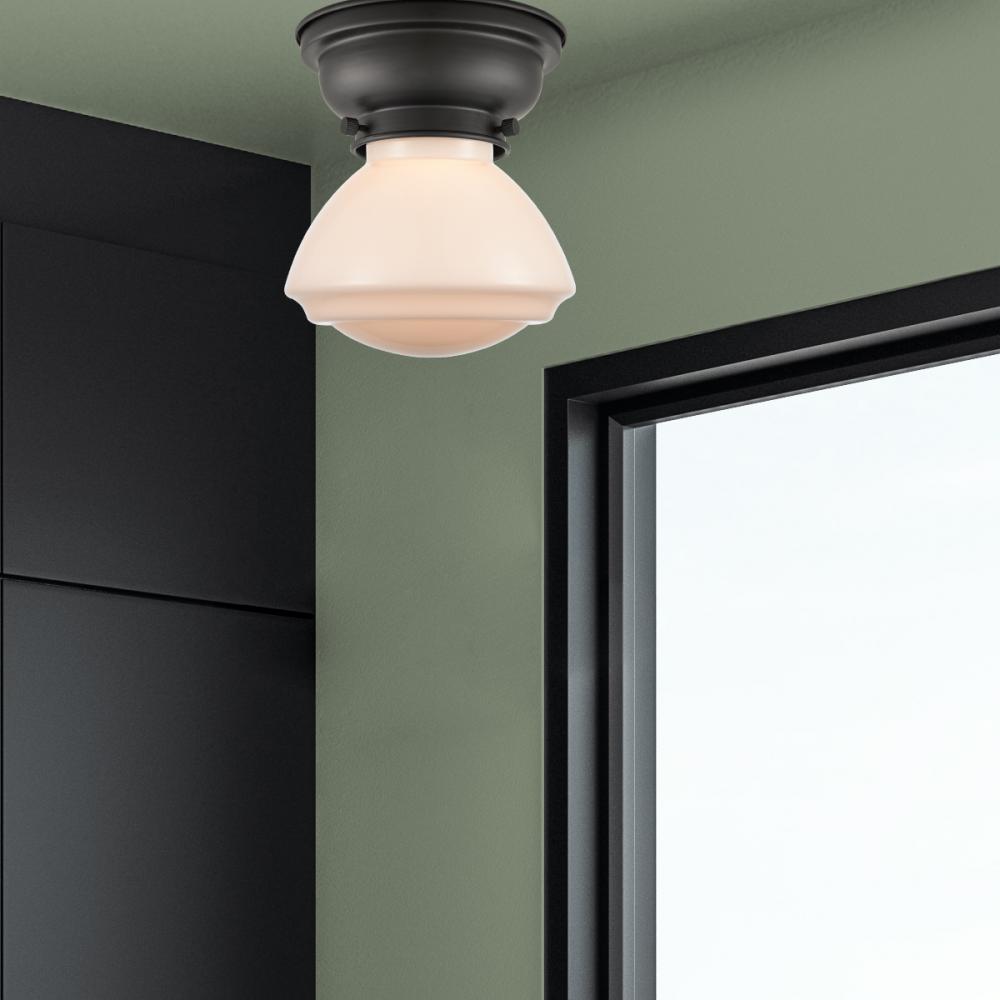 Olean - 1 Light - 7 inch - Matte Black - Matte White Shade - Flush Mount