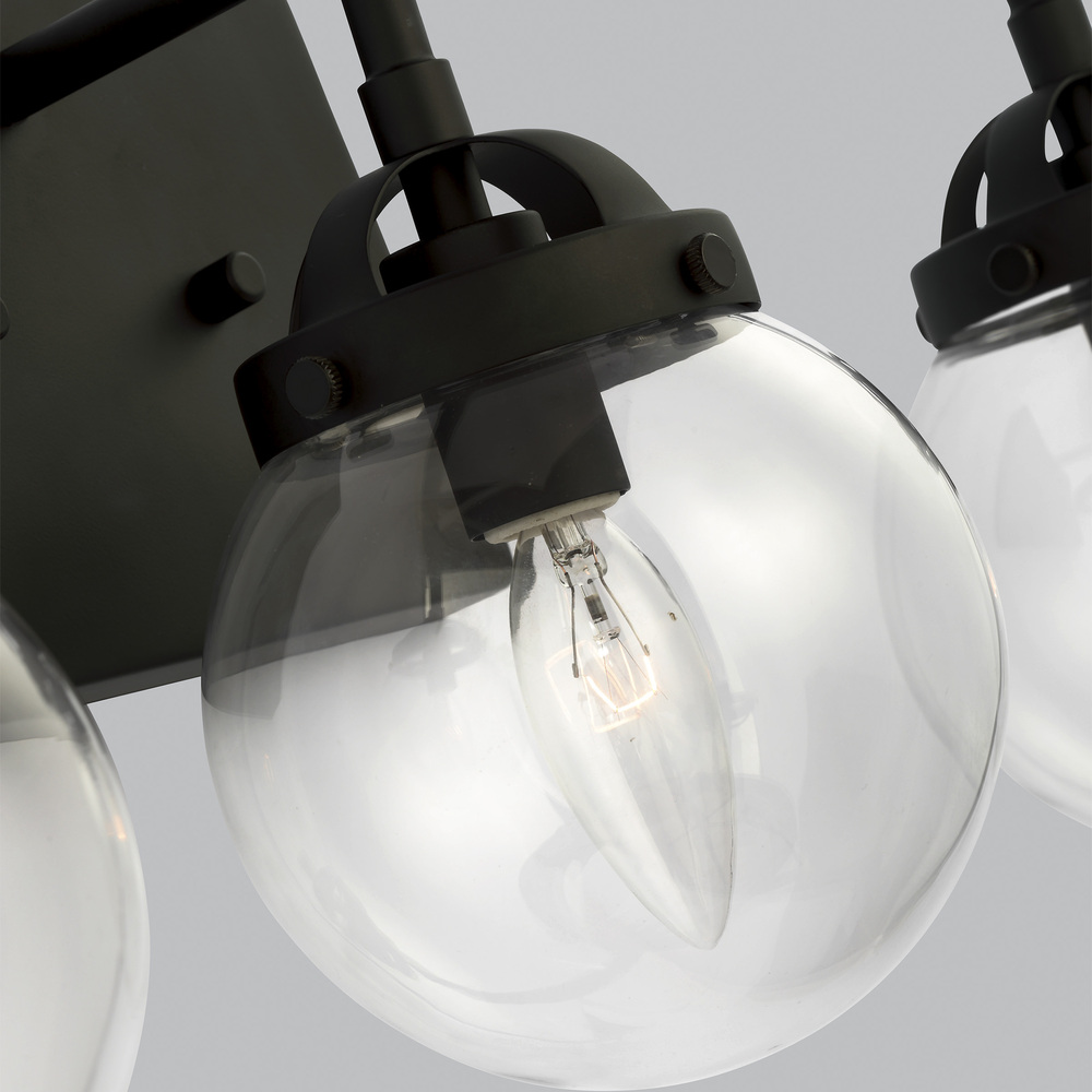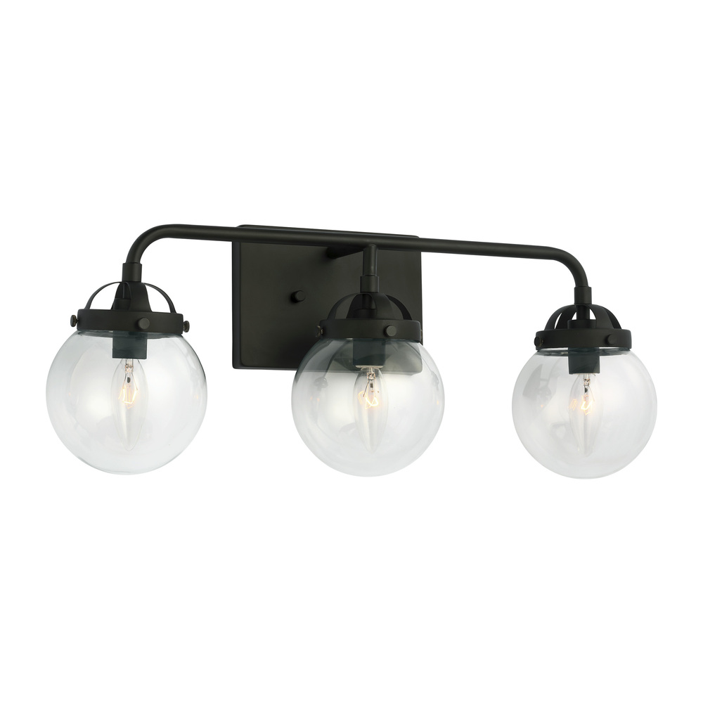 The Bryce three light vanity fixture in midnight black provides abundant light for your bath vanity, while adding a layer of today's style to your interior design.