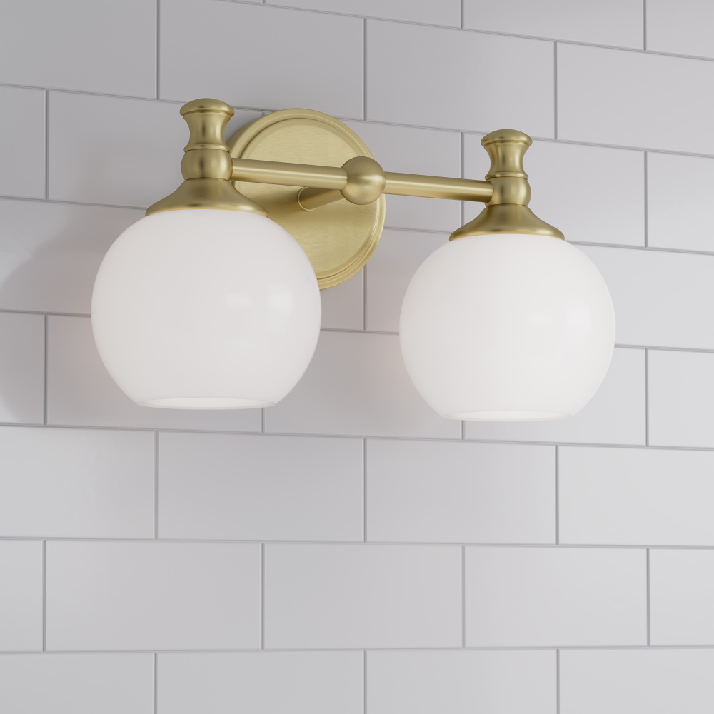 The Orlisse Collection of bath lighting perfectly melds classic Edwardian styling with contemporary simplicity. Opaque, etched opal globes suspend gracefully from fixtures finished in brushed nickel, matte black, or vintage brass and are topped with antique style finials. The fixtures are available as a 1-light wall sconce and 2 or 3-light vanity bar with round beveled backplates.