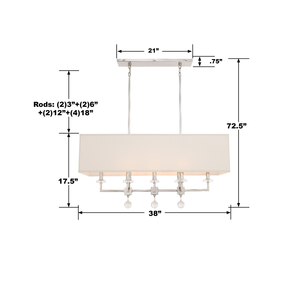 The Paxton collection combines geometrically arranged chunky glass bobeches with a frame of super-sleek, tapered crystal column ending with a single hanging glass ball. The delicate lines of the shapely frame, combined with the precisely balanced arms and simple, tailored shade, create a clean, transitional feeling with a distinct, mid-century modern flair. Stylish, modern and minimal, Paxton brings luxurious appeal to a variety of interior spaces.