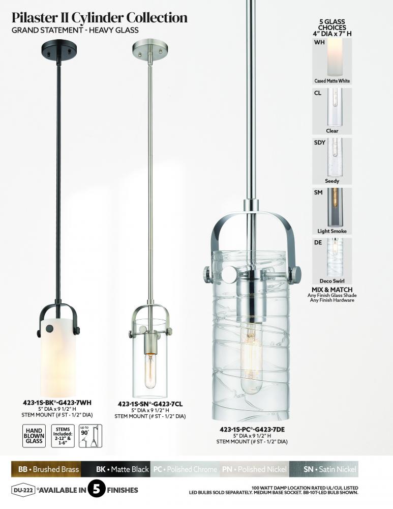 Timeless elegance abounds in the Pilaster II Cylinder collection. The graceful arch of the metal frame secures and the heavy glass cylinder and has a dynamic look that keeps this tailored piece ready to make a statement in whatever space it brightens