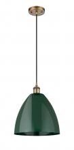 Plymouth - 1 Light - 12 inch - Antique Brass - Blue Shade - Cord hung - Mini Pendant