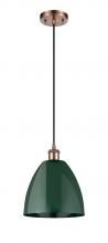 Plymouth - 1 Light - 9 inch - Antique Brass - Blue Shade - Cord hung - Mini Pendant