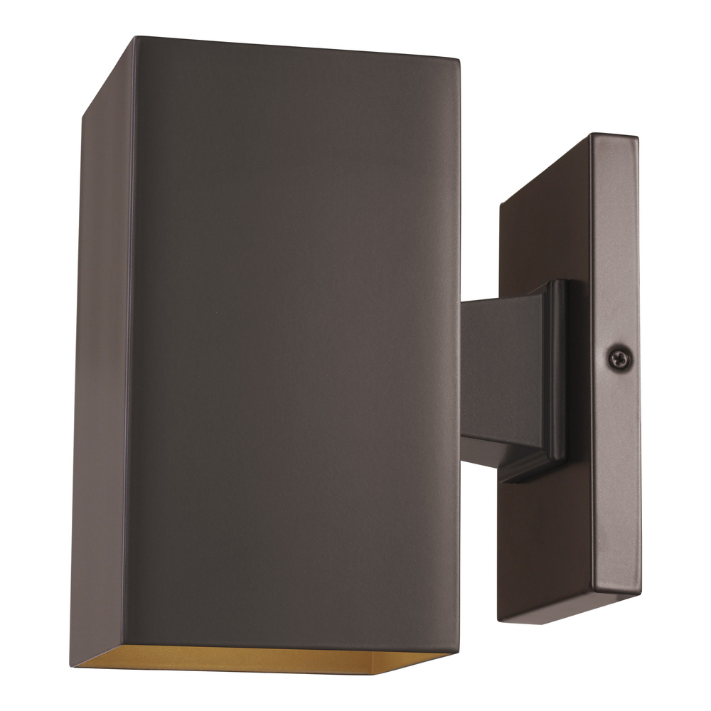 Contemporary outdoor fixture with industrial-style aluminum base is perfect for exterior wall applications such as garages, porches, patios or gazebos