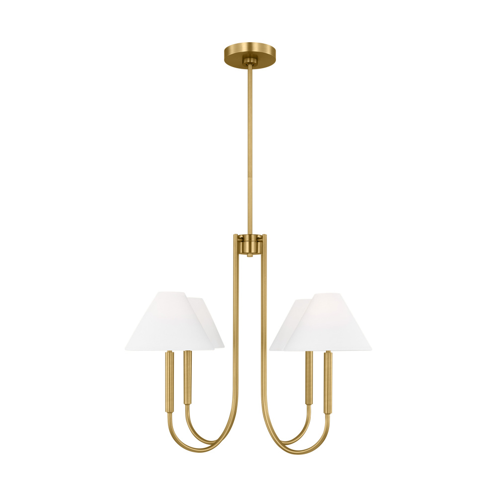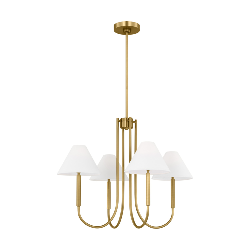 Porteau by Drew & Jonathan Scott is a sleek, chic, contemporary design featuring an updated j-arm style. Made from steel, Porteau features a classic silhouette with curved arms branching from a central rod. Each arm is topped with a candle-style sconce for 60W candelabra bulbs (sold separately), while small fabric drum shades diffuse light for a warm glow.