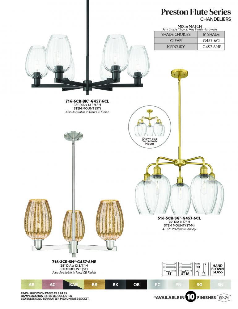 Preston Flute - 6 Light - 24 inch - Antique Brass - Chandelier
