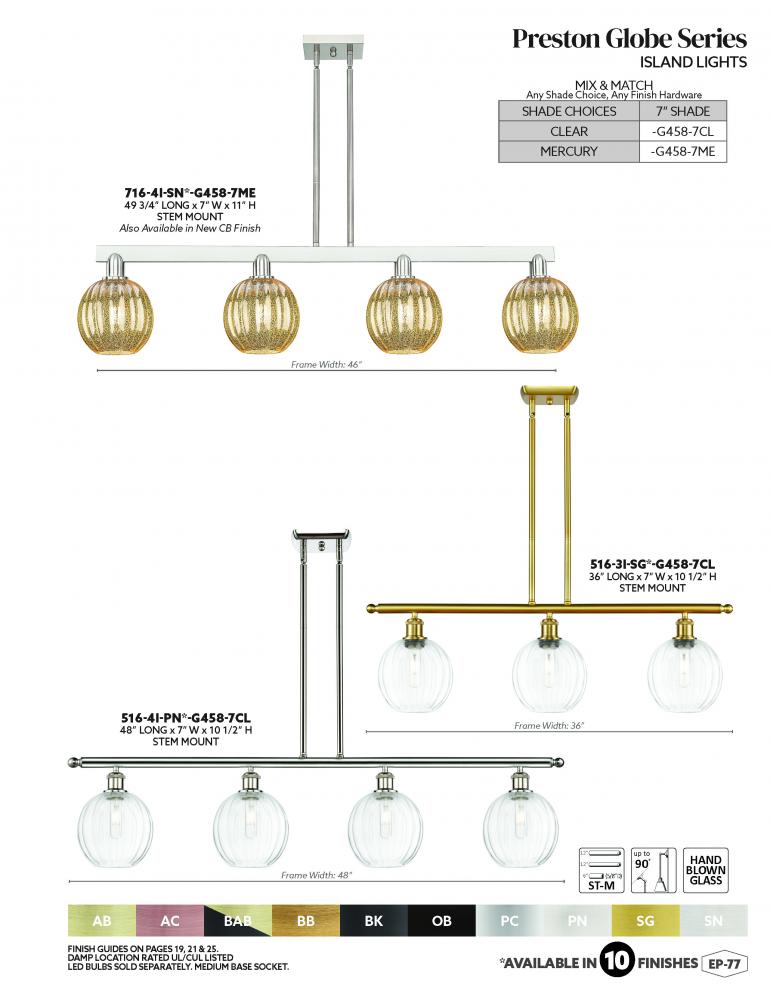 Preston Globe - 4 Light - 48 inch - Antique Brass - Stem hung - Island Light