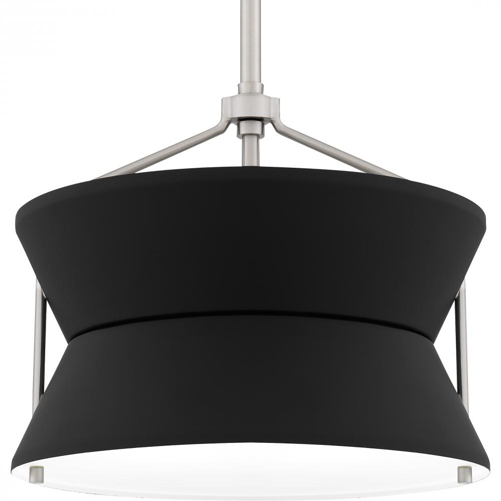 Available as a semi-flush mount or pendant light, Nira boasts a traditional silhouette with industrial-style details. The matte black metal shade adds a bold contrast to the brushed nickel hardware finish, creating a beautiful two-tone design. The versatil
