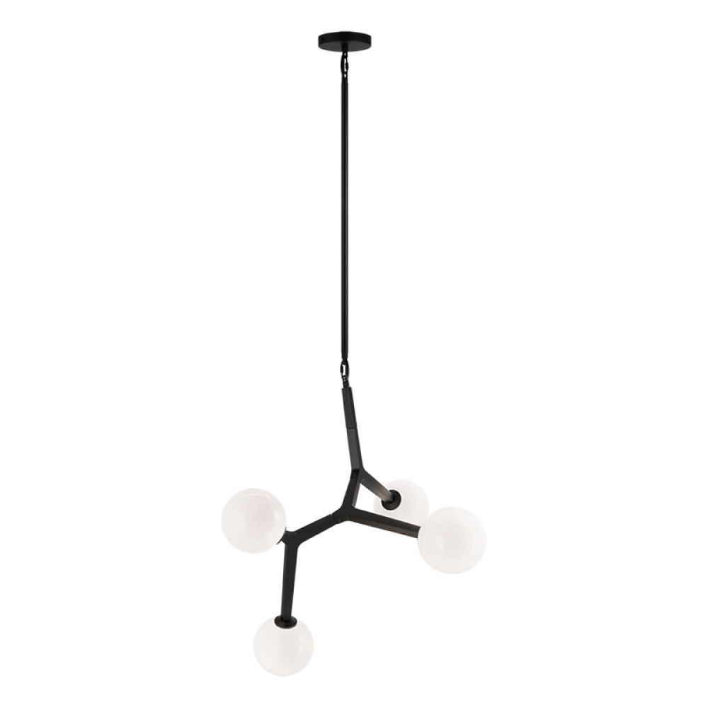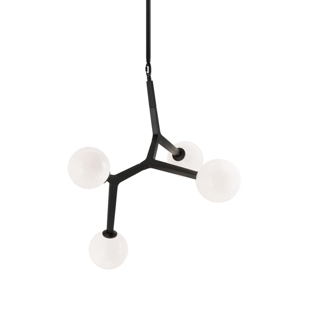 A mid-century inspired series that features branch-like elements with attached Opal Glass. The Rami is a stylish and graceful design that will bring refinement to any room. Available in the form of chandelier, wall sconce, and flush mount