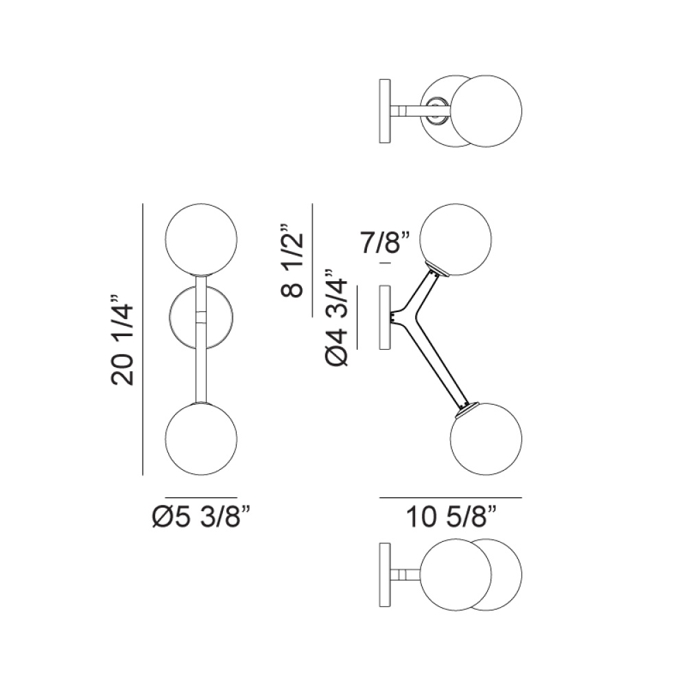 A mid-century inspired series that features branch-like elements with attached Opal Glass. The Rami is a stylish and graceful design that will bring refinement to any room. Available in the form of chandelier, wall sconce, and flush mount.
