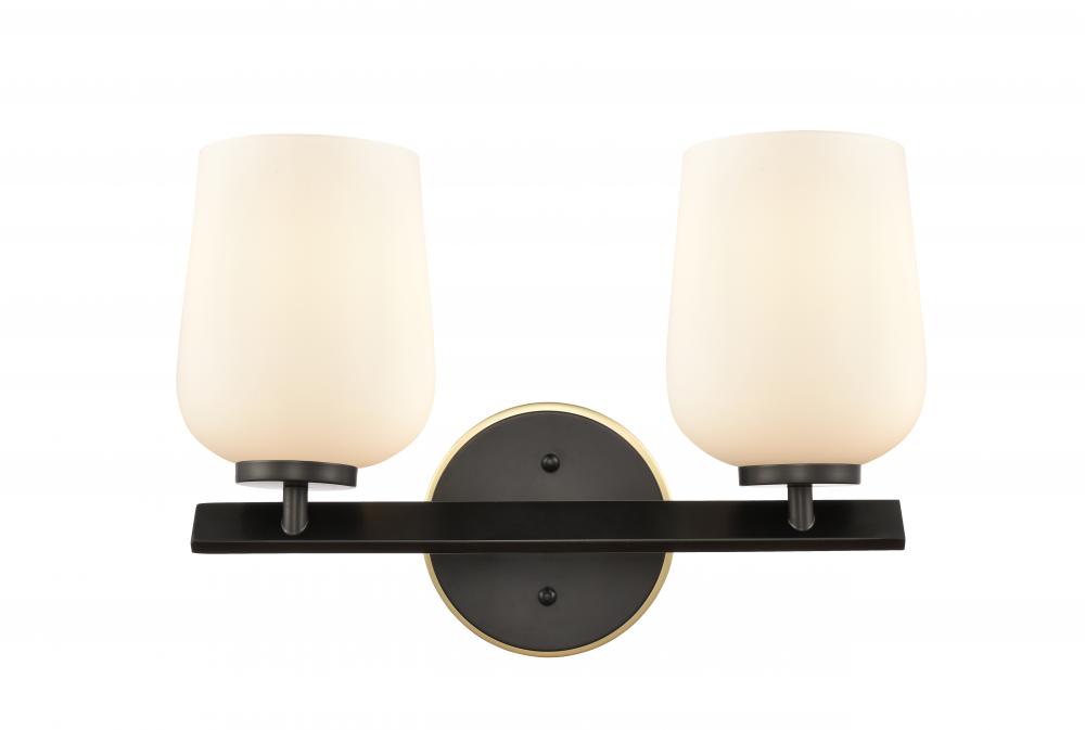 Remy - 2 Light - 15 inch - Black Satin Brass - White Shade - Bath Vanity Light
