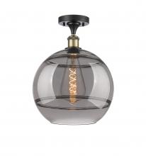 Rochester - 1 Light - 12 inch - Antique Brass - Clear Shade - Semi-Flush Mount