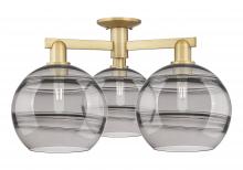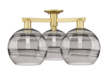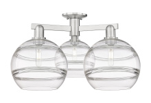 Rochester - 3 Light - 28 inch - Antique Brass - Clear shade - Semi-Flush Mount