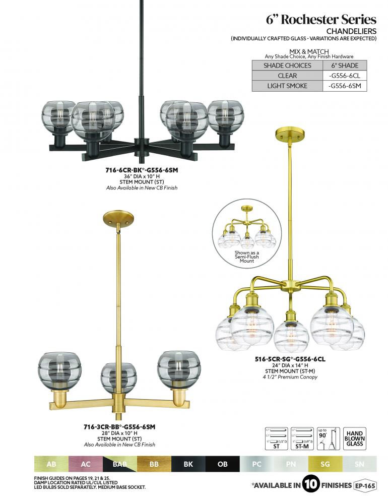 Rochester - 6 Light - 36 inch - Matte Black - Stem hung - Chandelier