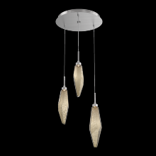 Rock Crystal Round Multi - Port - Cloth Braided Cord, Bronze - Electrcial - Integrated LED - 96 watts - 3000K - Dimmable MLV or TRIAC Dimmer - Indoor Dry Use - No Pre Treat - Chilled Blown Glass - Amber - Finish - Standard Metallic - Flat Bronze