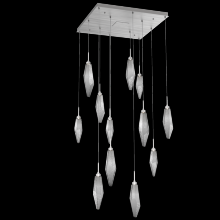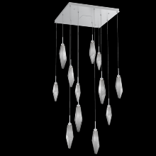 Rock Crystal Square Multi - Port - Metallic Beige Silver - Chilled Blown Glass - Amber - Cloth Braided Cord - LED - 2700K