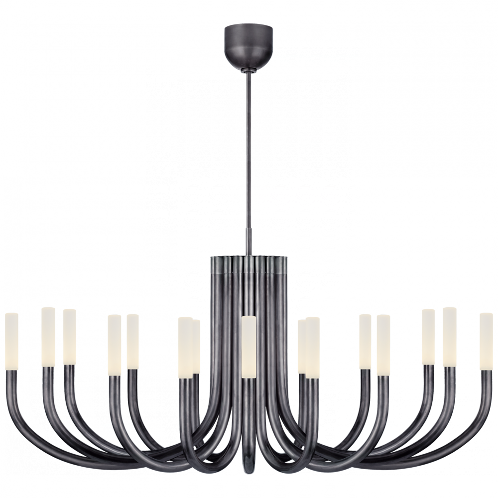 Rousseau Large Oval Chandelier in Bronze with Etched Crystal