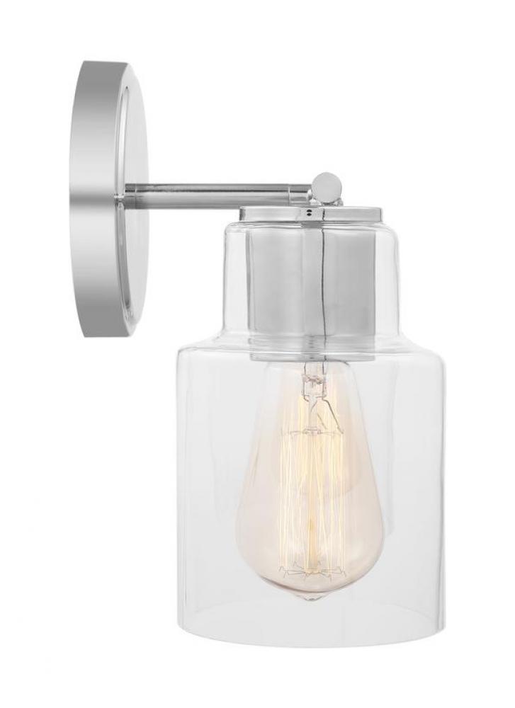 Made to coordinate across a broader range of bath hardware and design styles, this light adds bright light where you need it most with its clear glass shade and classic metal backplate in striking, modern finishes