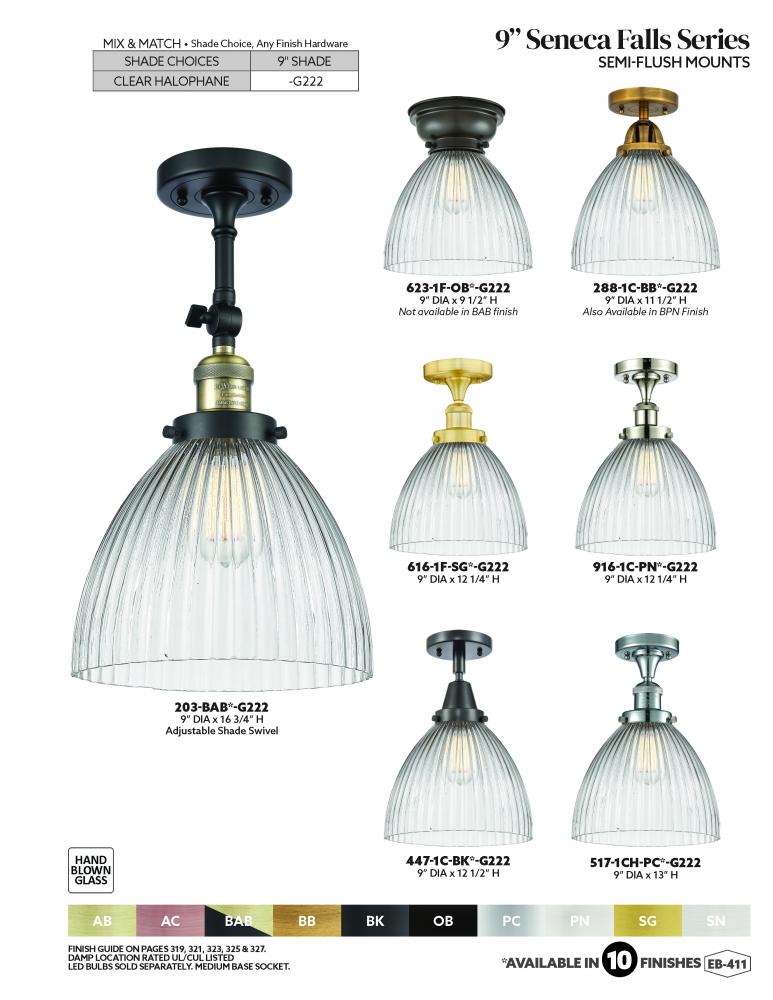 Seneca Falls - 1 Light - 10 inch - Antique Brass - Clear Halophane Shade - Flush Mount