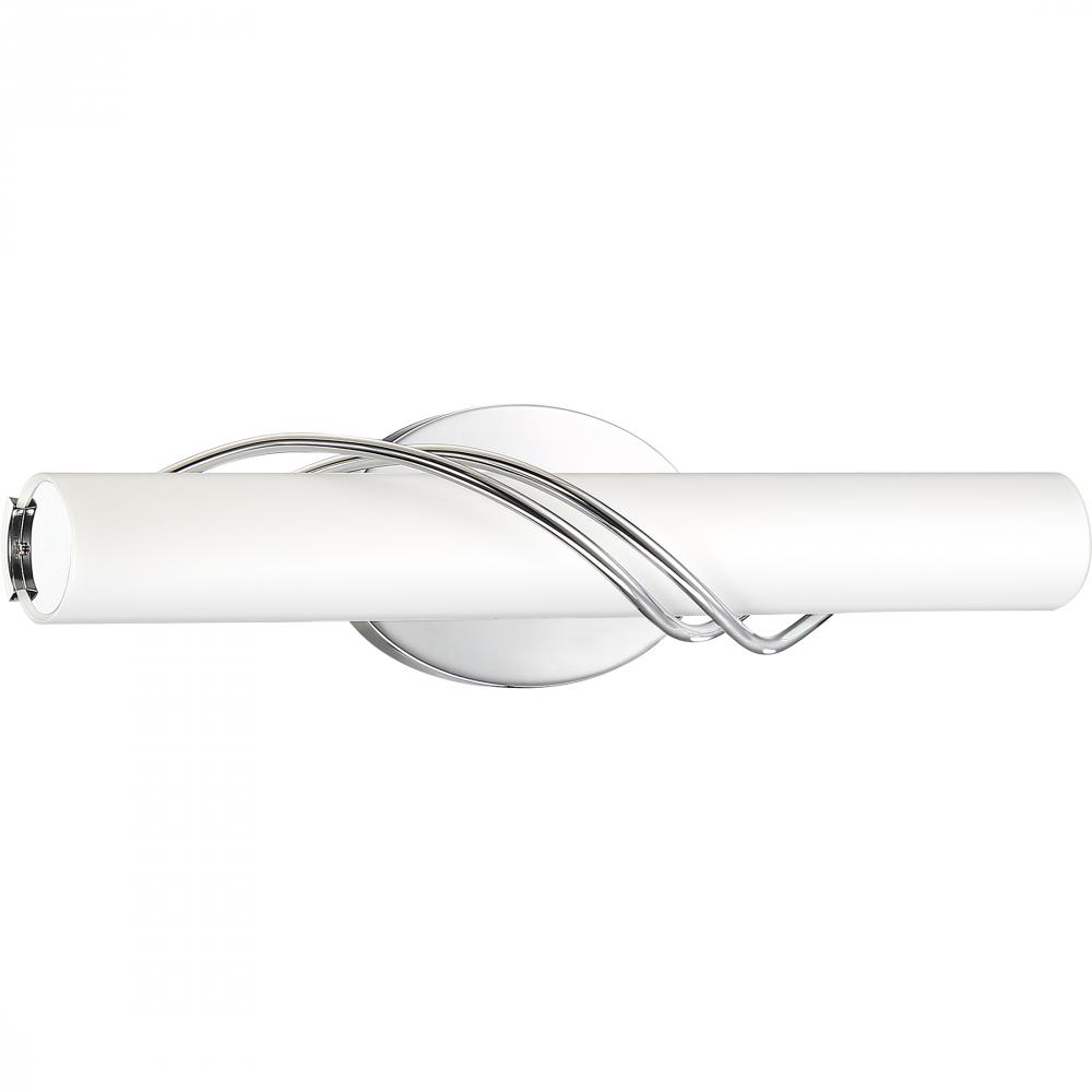 Simple meets sophisticated in the Serenade vanity light. This contemporary bath bar’s etched glass shade creates a soft, sleek appearance while evenly diffusing the integrated LED. Delicate accents in a lustrous Polished Chrome or Matte Black wrap the sh