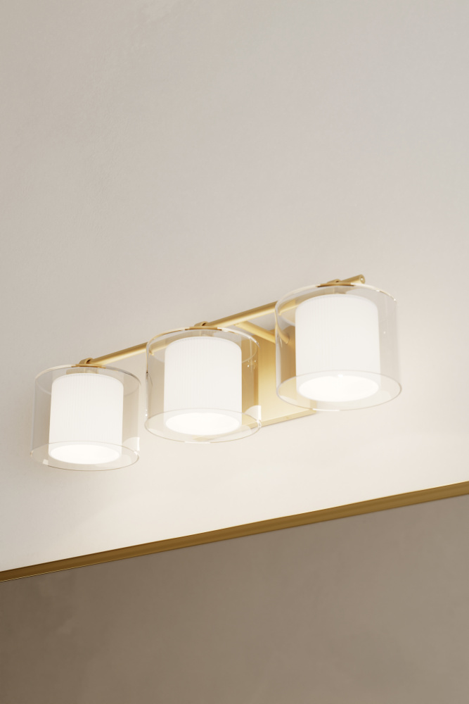 3-Light Vanity - Legacy Brass with Clear and Etched Opal Glass